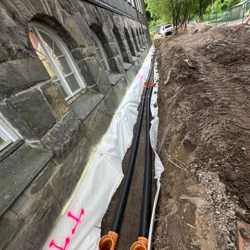 Vi fick i uppdrag att rusta upp utemiljön vid Bagaregårdsskolan för att skapa en trygg, funktionell och inspirerande plats för eleverna. Arbetet omfattade en större dränering längs husgrunden för att förbättra markavvattningen och stärka skolans långsiktiga grundskydd.