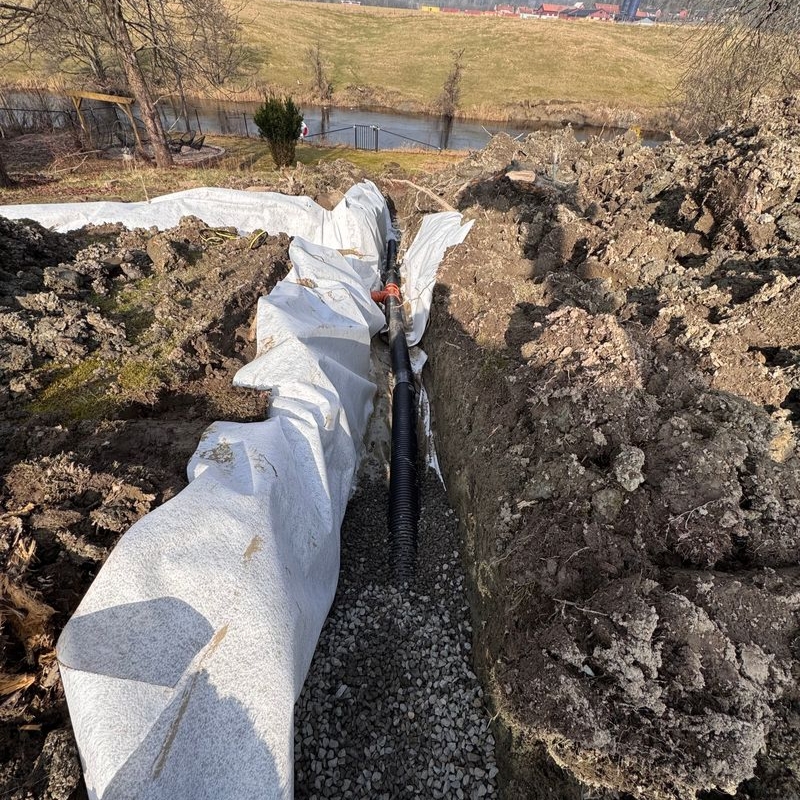 Vi fick i uppdrag att utföra en omfattande dränering runt en villa i Partille för att säkerställa god markavvattning och förebygga framtida fuktproblem. Arbetet genomfördes med fokus på noggrannhet och långsiktig hållbarhet, där vi tog hand om hela processen. Från schaktning till återställning av marken.